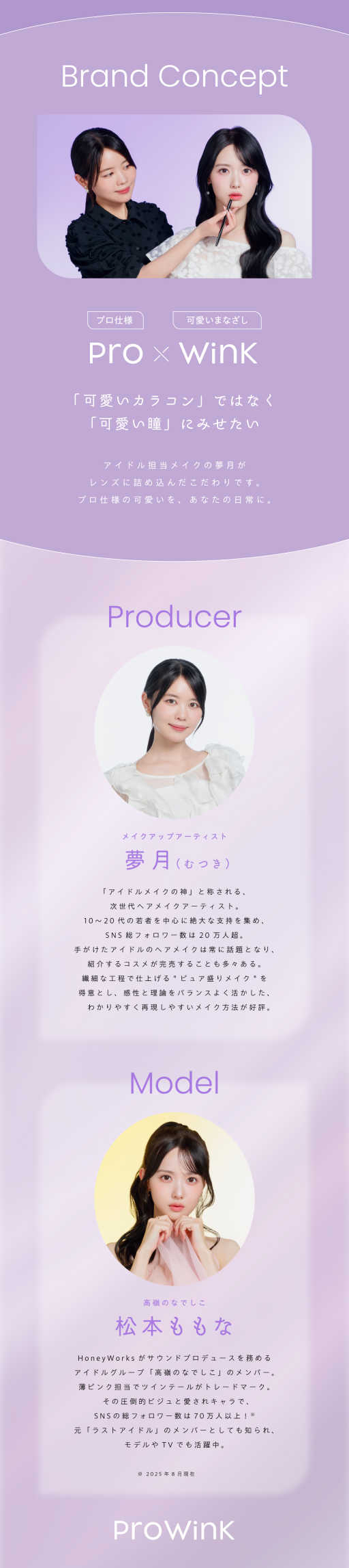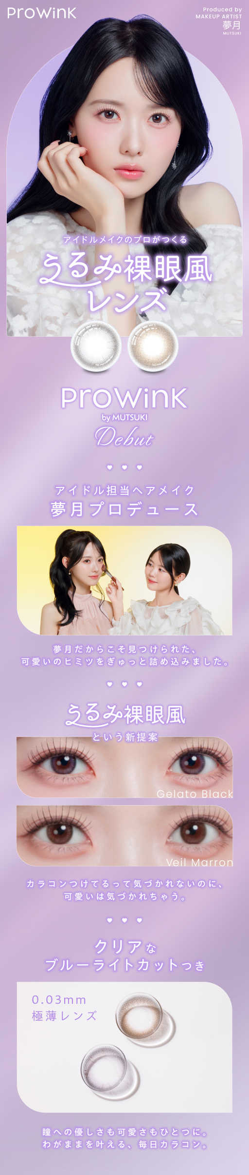 ProWink by MUTSUKI 松本ももなイメモ 黒コン 茶コン 紺色 ネイビー ツヤ感 プロ仕様 可愛い瞳 うるみ裸眼 極薄レンズ 0.03mm ブルーライトカット アイドルメイクのプロがつくるうるみ裸眼風レンズ 夢月プロデュース クリアなブルーライトカットつき 夢月だからこそ見つけられた可愛いのヒミツを詰め込んだカラコン